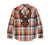 Heavyweight cotton twill plaid shirt with large eagle graphic on back. Built for on- or off-bike wear with hidden snap-down collar that stays flat under riding gear.